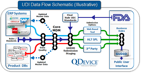 Som en del av systemet er de som ansvarlig for merking pålagt å levere informasjon til den FDA administrerte «Global Unique Device Identification Database», GUDID. GUDID vil inkludere et standard sett med grunnleggende identifikasjons-elementer for hvert utstyr som har en UDI, og inneholder kun informasjon om UI (DI). Det er UI som vil være nøkkelen for å finne informasjon om utstyret i databasen. PI (produksjonsidentifikatorer) er ikke en del av GUDID. Mesteparten av informasjonen vil gjøres offentlig slik at brukere av medisinsk utstyr enkelt kan finne informasjon om et utstyr. En UDI indikerer ikke, og GUDID databasen inneholder ikke, noe informasjon om aktører som bruker et utstyr.